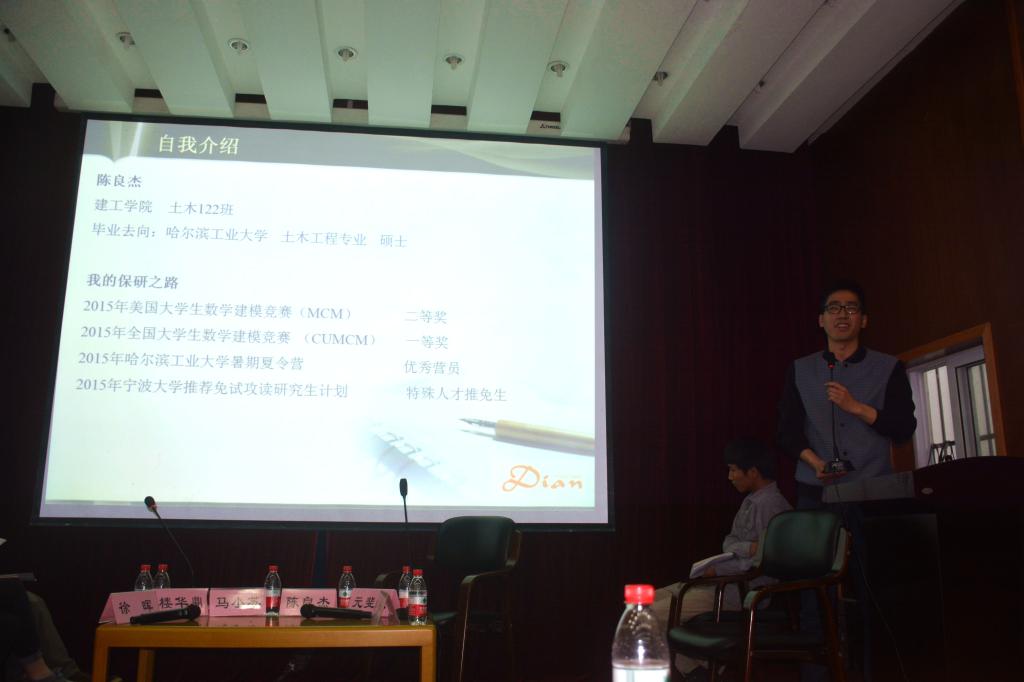 4月22日晚,建工学院考研座谈会暨第十三届建筑文化节开幕式在建工学院报告厅举行,考研座谈会邀请了马小苏、徐晖、楼华鼎、陈良杰和元斐斌等同学就考研保研问题进行探讨,建工学院一百多名学生参加了本次开幕式。