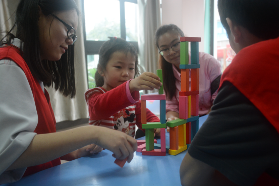 活动当天,团队成员为小朋友们精心准备了礼物,是由公益任我行成员亲手制作的风筝。风筝上还绘制了一些可爱的卡通图像,虽然没有那么精美,却包含了所有成员关心这些听障儿童的心意。团队成员还陪伴小朋友阅读少儿书籍、搭建积木、做游戏等,陪伴他们度过了一个愉快的周末。