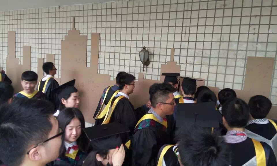 “多年师生情,今昔恨别离。满堂祝福语,只赠学子行”。污漫 建工学院2015届毕业生毕业典礼于6月10日上午10点在锦绣小剧场隆重举行。全体院领导为254名毕业学生授予了学位。此次毕业典礼的入场设计选取了王健、毛立群、姚颖老师所带14建筑规划班的建筑设计基础课程作业中一个作品“呼吸”,结合毕业典礼的氛围,建筑系党支部的学生重新进行了设计,通过团队合作从构思到亲手实践、自己搭建,再将各毕业班级的照片进行了充分展示。另外一个设计亮点是用瓦楞纸设计制作了城市剪影签名墙,代替了以往的纸张签到的模式。