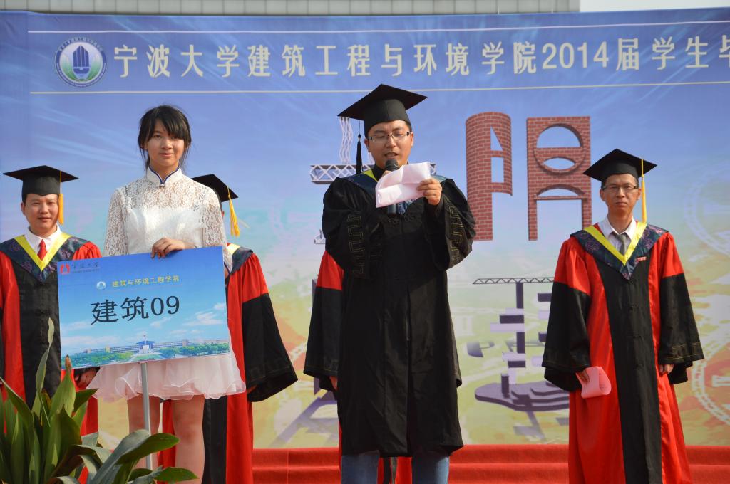 6月13日下午,建工学院2014届毕业生毕业典礼在包玉书科学楼广场隆重举行。建工学院院长郑荣跃教授,院党总支书记王益澄教授,建工学院副院长柳俊哲教授、王侃老师、徐进老师、李辉老师,院党委副书记俞金波老师及各系主任出席了典礼,此外观礼的还有全体毕业班班主任、院办全体工作人员,以及学院2014届全体毕业生以及家长代表。毕业典礼由院党总支书记王益澄教授主持。