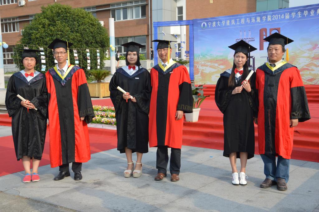 首先,院党总支书记王益澄教授宣布毕业典礼正式开始,并介绍出席此次典礼的领导和嘉宾。接着院党委副书记俞金波老师宣布获得2014届省级、校级、院级优秀毕业生名单。在学生感言后,学院院长郑荣跃教授对2014届毕业生表示祝贺,希望他们能脚踏实地,怀有理想之心,走出校门以后,继续关心、支持母校的建设和发展。典礼的最后,学院领导们为毕业生颁授学位(拨穗),请毕业生同学依次上台并合影。
