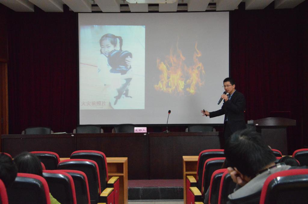 徐老师的讲解深入浅出,内容涉及多方面知识,对火灾发生的原因、预防火灾方法、火场逃生基本知识、灭火器的正确使用等方面进行了生动的讲解。他不仅从理论上向大家传授关于消防的各种安全防范知识,而且列举了大量实际生活中的真实案例,许多错误的逃生手段,教训深刻,发人深省。在精彩讲解之后,徐老师为同学们演示了灭火器的使用方法,现场让同学灭火,使同学对消防安全有了很深刻的认识。