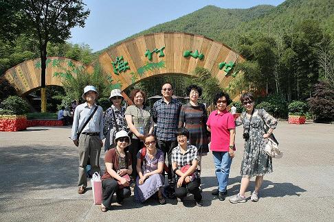9位退休教师在学院组织下兴致勃勃地游玩了江苏溧阳天目湖和南山竹海。