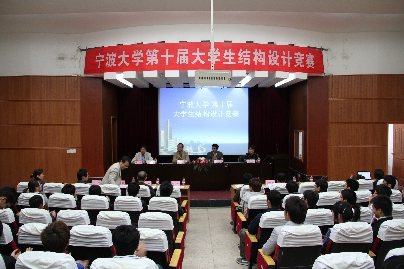 2011年4月16日上午,污漫 第十届大学生结构设计竞赛决赛在建筑工程与环境学院报告厅举行。竞赛组委会副主任、教务处副处长杜建科出席大赛开幕式并讲话,建工学院院长郑荣跃宣布比赛开始。评审专家组由郑荣跃教授、柳俊哲教授、李辉副教授、丁勇副教授、李俊华副教授,王万桢副教授以及设计院的李翔高级工程师担任。
