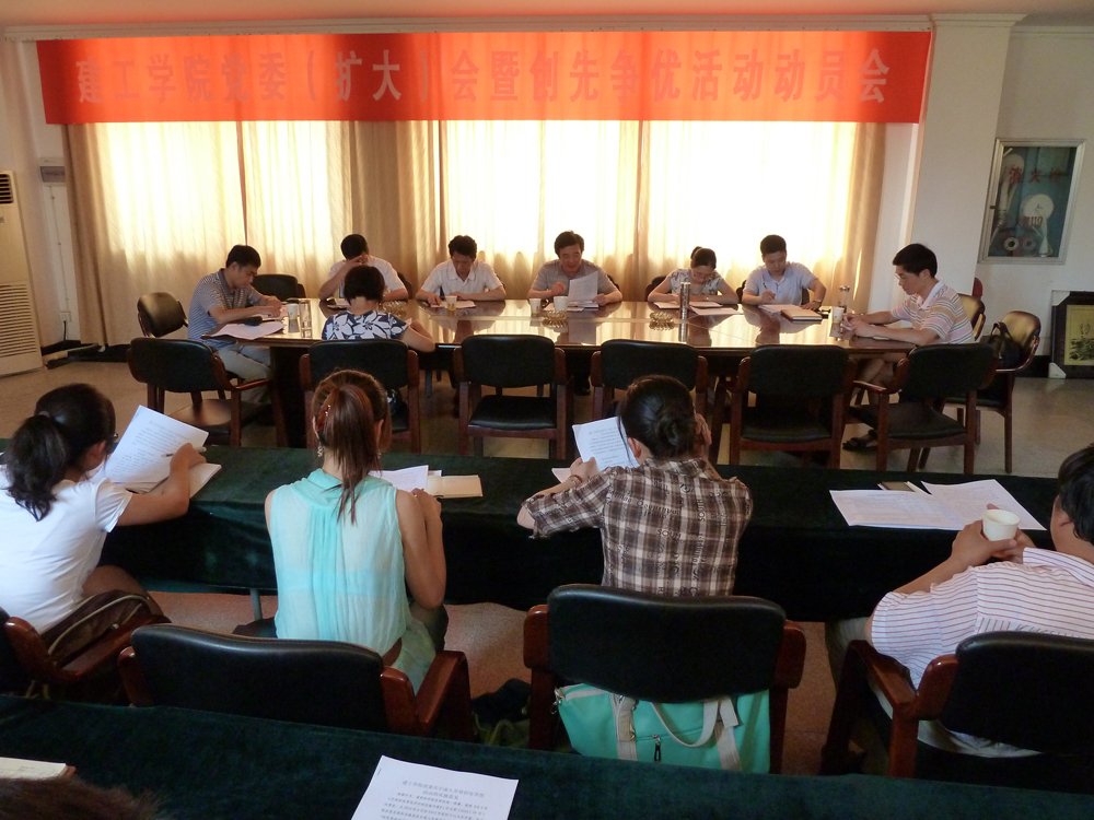 根据学校党委的统一部署,建工学院党委精心制定了创先争优活动方案,明确了“凝心聚力促发展,教书育人做先锋”这一活动载体,并成立了学院创先争优活动领导小组及办公室。会上,学院党委书记王益澄传达了校党委关于创先争优活动相关会议及文件精神,同时就学院制定的活动方案进行了布置。会议要求,各下属党支部要以建设学习型党组织、服务型党组织为重点,结合工作实际开展创先争优活动,要在一定范围内做出创先争优具体计划的公开承诺,接受监督。会议确定了学院活动领导小组成员联系指导一个基层党支部开展创先争优活动。每位党员提出参加创先争优活动的具体打算,每名教师党员要联系1个学生班级、1个学生寝室和1名以上困难学生,对学生的思想、学习、就业创业等提供更多关怀和帮助,每名大学生党员每季度至少参加一次志愿者服务活动。使教工党员成为育人成才的先锋,使学生党员成为全面发展的先锋,以崭新面貌和优异成绩迎接建党90周年和党的十八大的胜利召开。