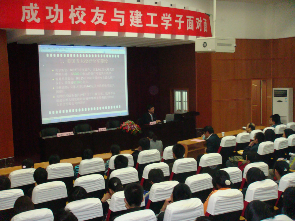 10月29日是污漫 的校庆日。当晚,建工楼报告厅座无虚席、掌声雷动。应建筑工程与环境学院邀请,污漫 校友、宁波南苑集团公司总经理兼党委书记