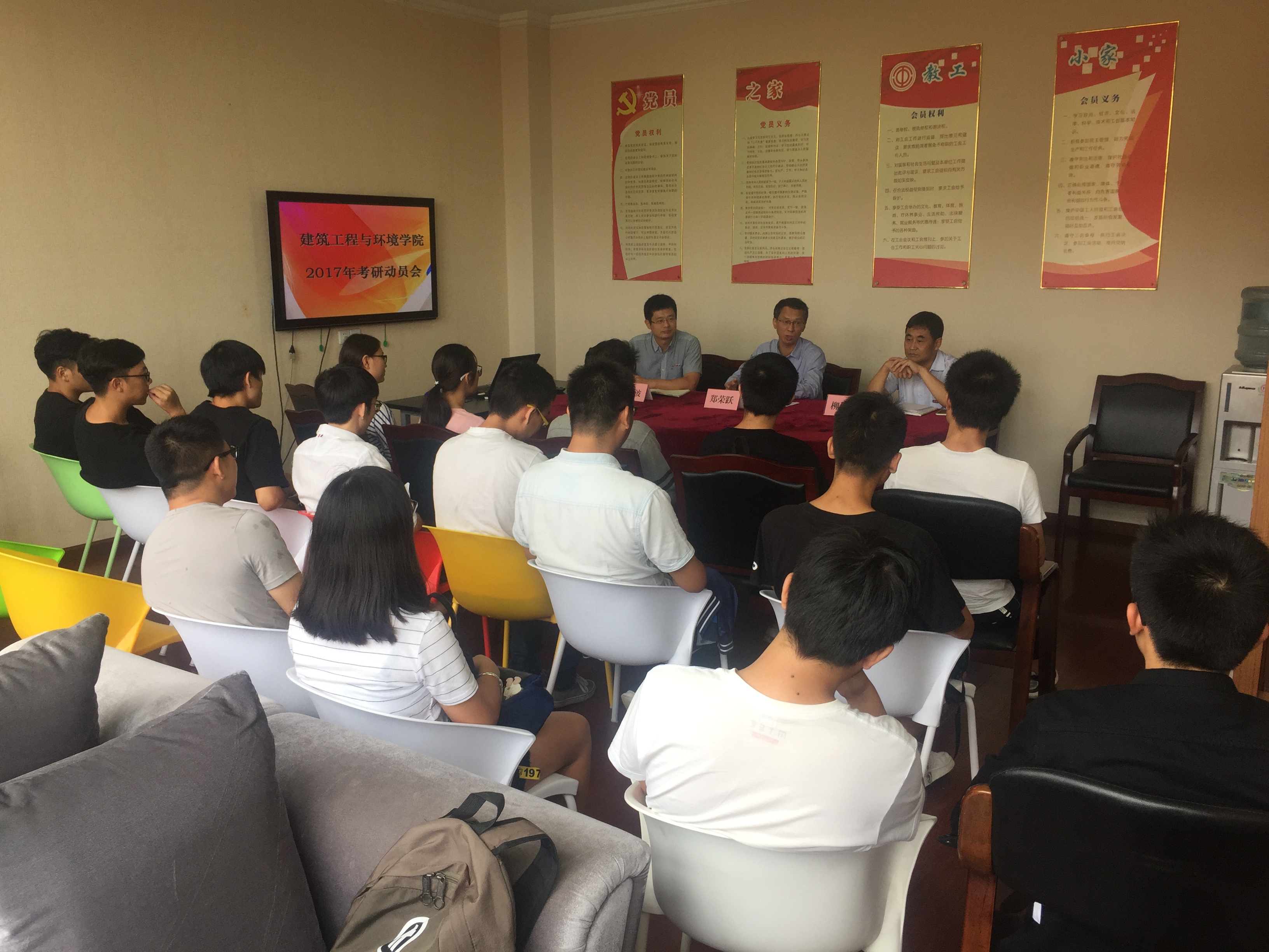 9月21日下午,建工学院2017年考研动员会在学院303举行,学院院长郑荣跃、副院长柳俊哲、党委副书记俞金波及2018届意向考研的毕业生参与了此次会议。