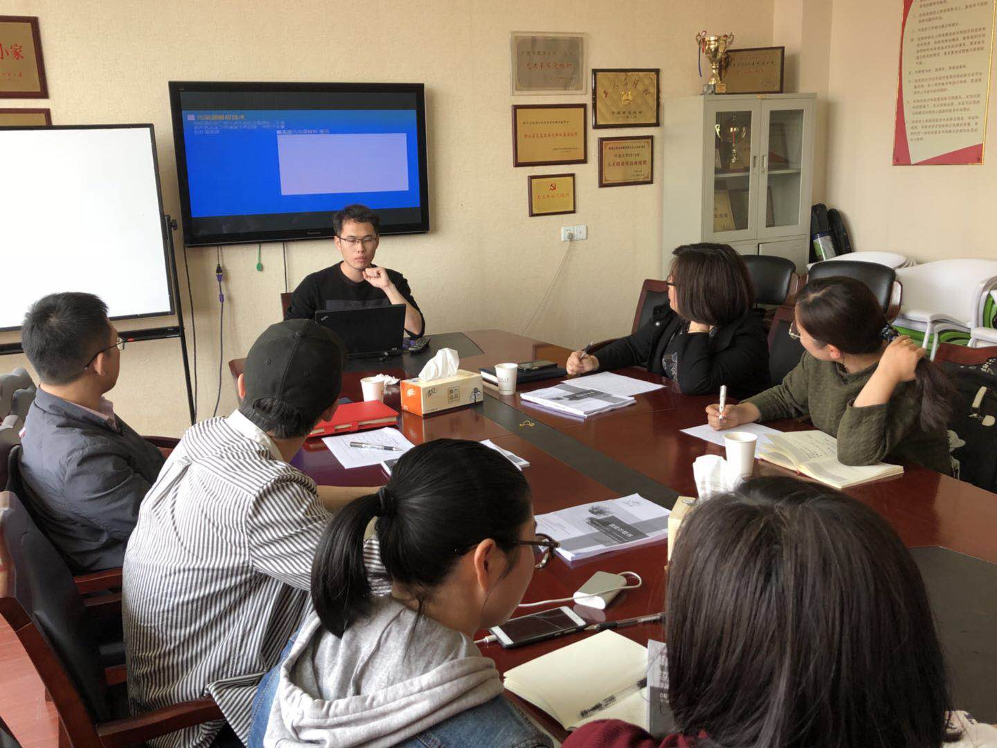 本次参加“互联网+”共有四支队伍,分别为“智迪科技”、“清源观察中心”、“思清水景”和“懿森建筑”。四支队伍负责人分别将所在队伍的项目进行了展示和介绍。戚家超老师对分别对各支队伍提出了存在的问题以及改进建议。