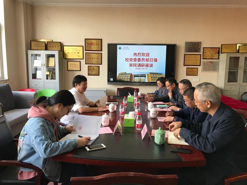 2020年11月11日下午, 校党委委员邹日强赴土污漫 调研座谈。