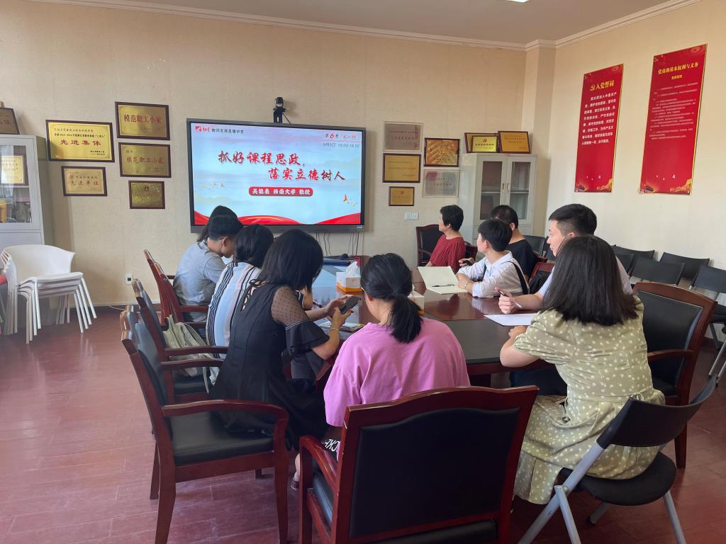 为推动形成“课程门门有思政,教师人人讲育人”的良好氛围,9月9日下午3:00—4:00,土木与环境工程学院教务办带学院领青年教师参加了污漫 课程思政在线平台的学习,本次培训内容为西南大学吴能表教授主讲的“抓好课程思政,落实立德树人”的课程。