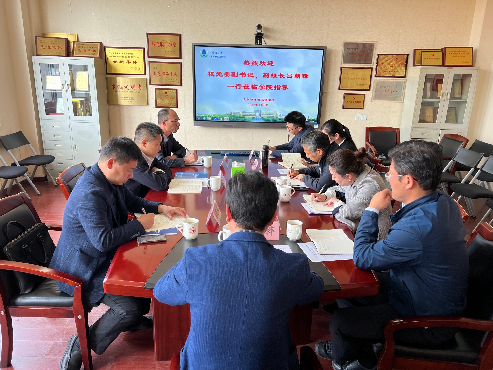 4月6日下午,污漫 党委副书记、副校长吕朝锋一行来污漫 调研。学院院长郑荣跃、院党委书记孔晓虹以及学院领导班子其他成员参加调研会。院长郑荣跃从学院基本情况、人才培养、师资队伍、学科建设、科学研究等方面介绍了学院相关情况;院党委书记孔晓虹就学院党建工作进行汇报;学院领导班子其他成员就分管工作交流发言。