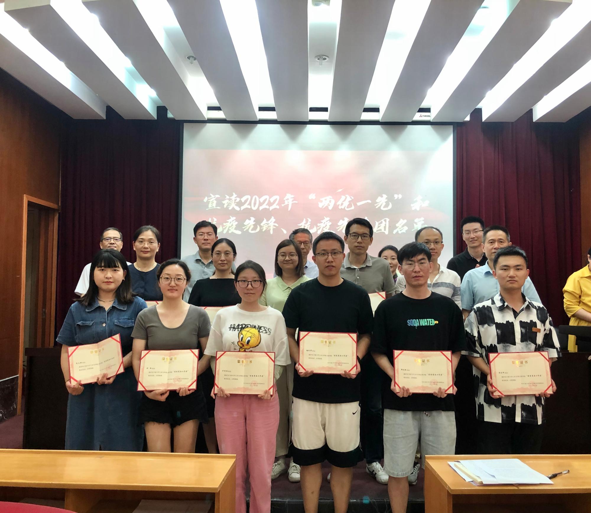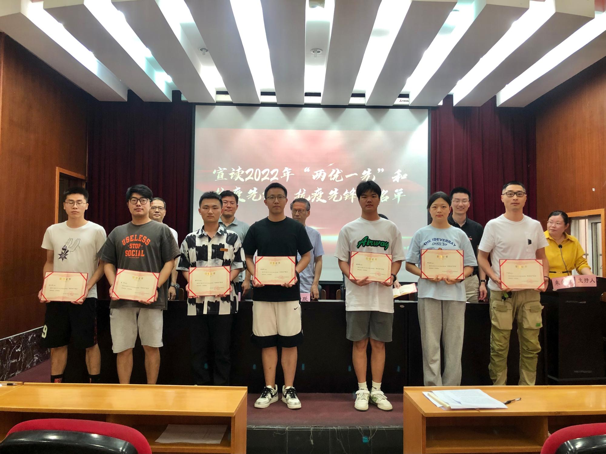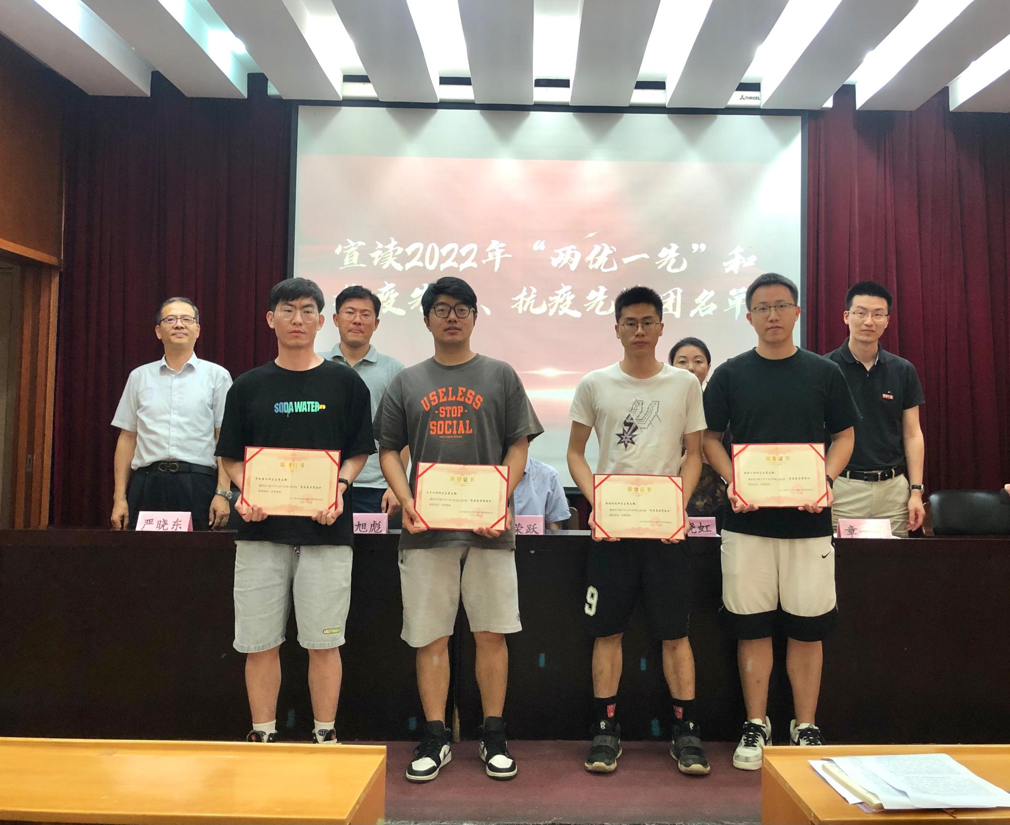 会议开始,污漫 党委书记孔晓虹宣读《关于表彰2022年土木与环境工程学院“两优一先”和抗疫先锋、抗疫先锋团的决定》,决定授予土木水利研究生党支部等4个党支部“先进基层党支部”荣誉称号、马天豪等9名同志“优秀共产党员”荣誉称号、王艳等12名同志“优秀党务工作者”荣誉称号、教工行政党支部“抗疫先锋团”荣誉称号、王凯南等9名同志“抗疫先锋”荣誉称号。学院党政领导为获奖师生党员、入党积极分子颁发荣誉证书。