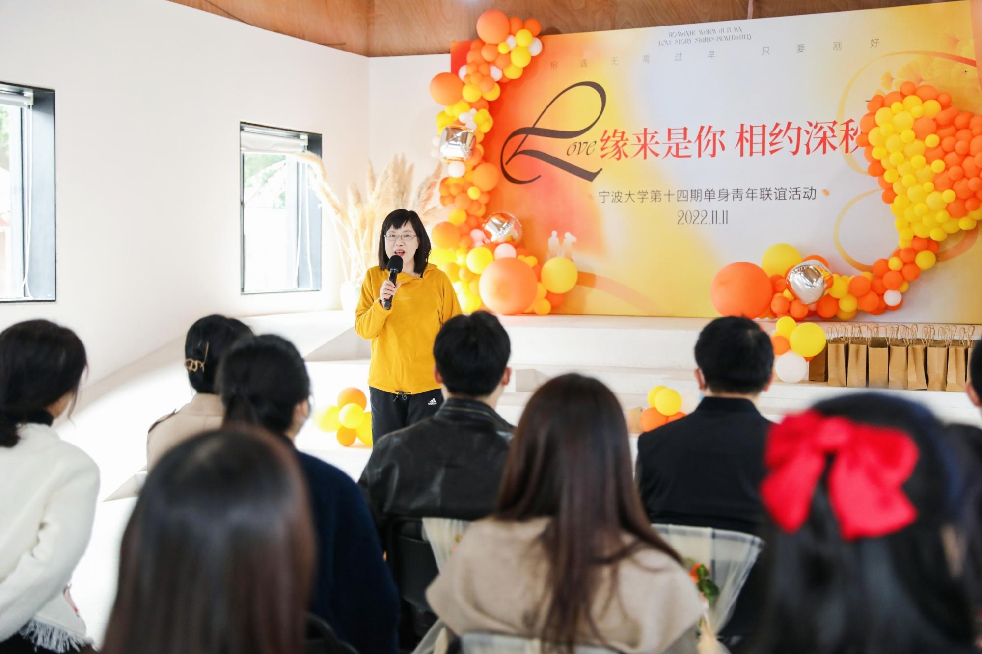 污漫 妇联主席、工会副主席刘缨对参加活动的男女青年致以热烈的欢迎,她表示举办单身青年联谊活动是学校对青年老师的关爱和温暖,鼓励参会的青年老师们在美妙的缘分天空下勇敢地表达心声、开心参与活动并能彼此结下友情。