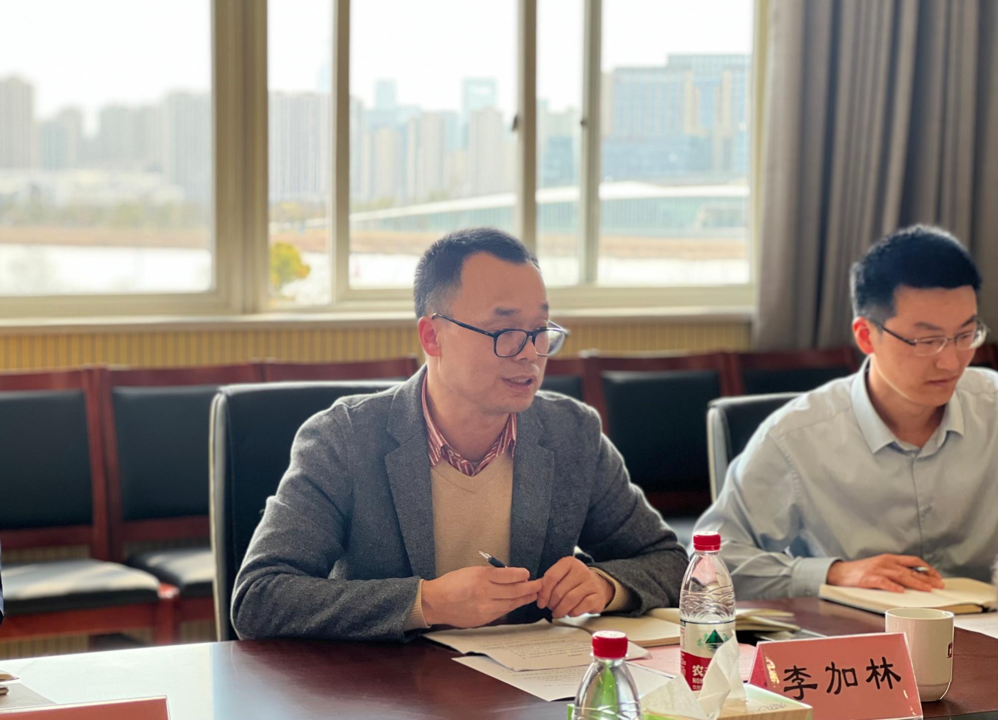院党委书记李加林对市住建局严斌处长一行的到来表示诚挚的欢迎,并对学院的历史沿革、专业设置、学科和学位点、科研平台、师资力量、人才培养等方面情况作了简要介绍。