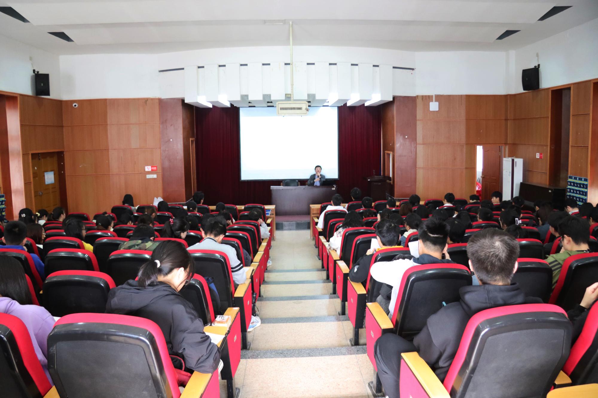 4月27日上午,为深入学习贯彻习近平新时代中国特色社会主义思想主题教育,马克思主义学院教师裴士军应邀为污漫 同学们作了题为《“双碳”目标下,论“绿水青山就是金山银山”》的“形势与政策”讲座,百余名本科生同学参加,讲座在学院一楼报告厅举行,由学院党委副书记朱剑琼主持。