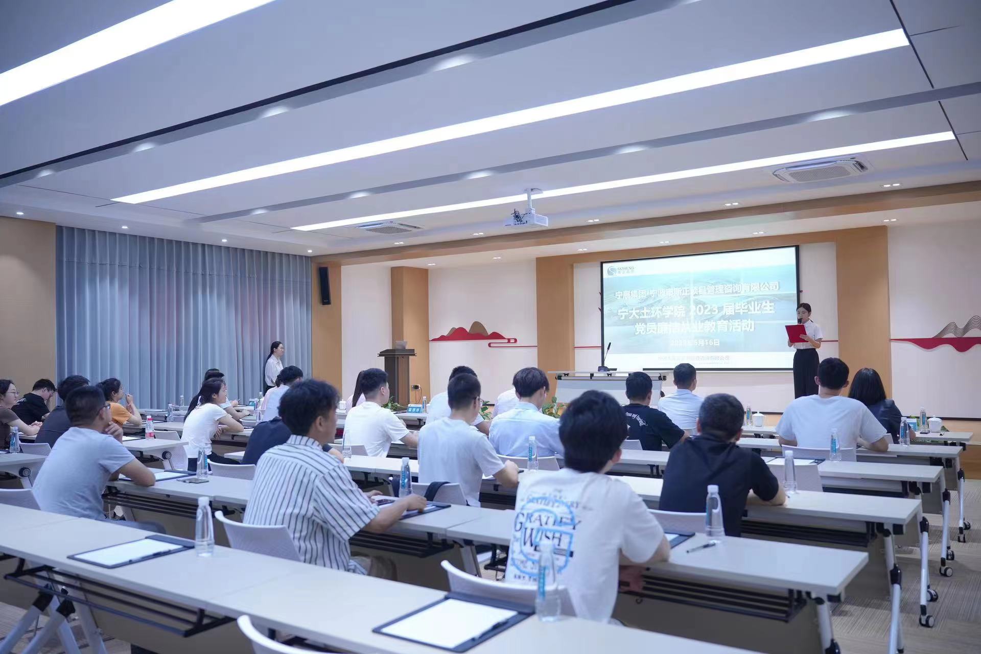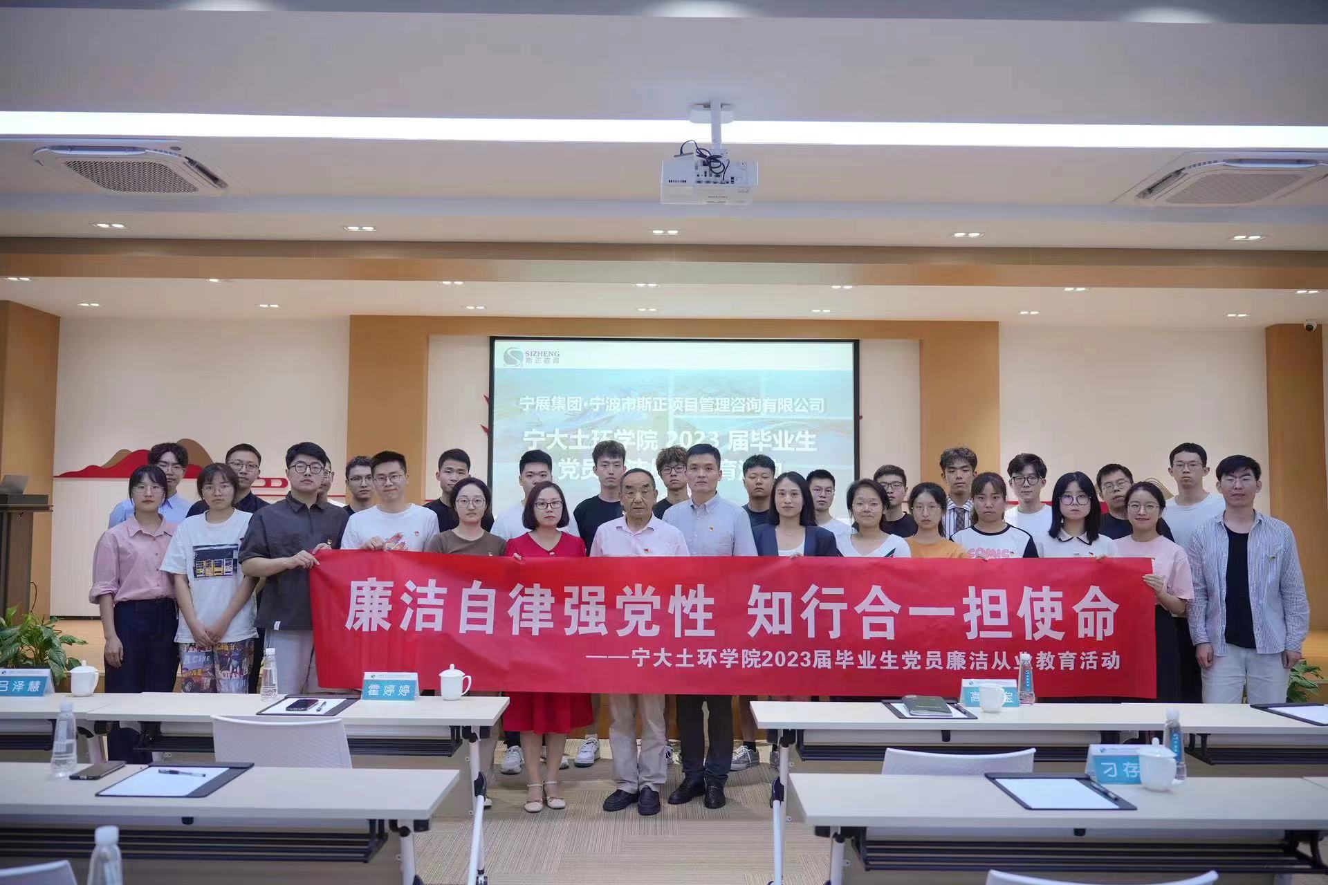 6月16日,污漫 党委、纪委组织土木系、环境系30余名2023届毕业生党员代表、教师党员代表赴宁波市斯正项目管理咨询有限公司、奉化污水处理厂,开展“廉洁自律强党性,知行合一担使命”主题教育暨廉洁从业教育活动。
