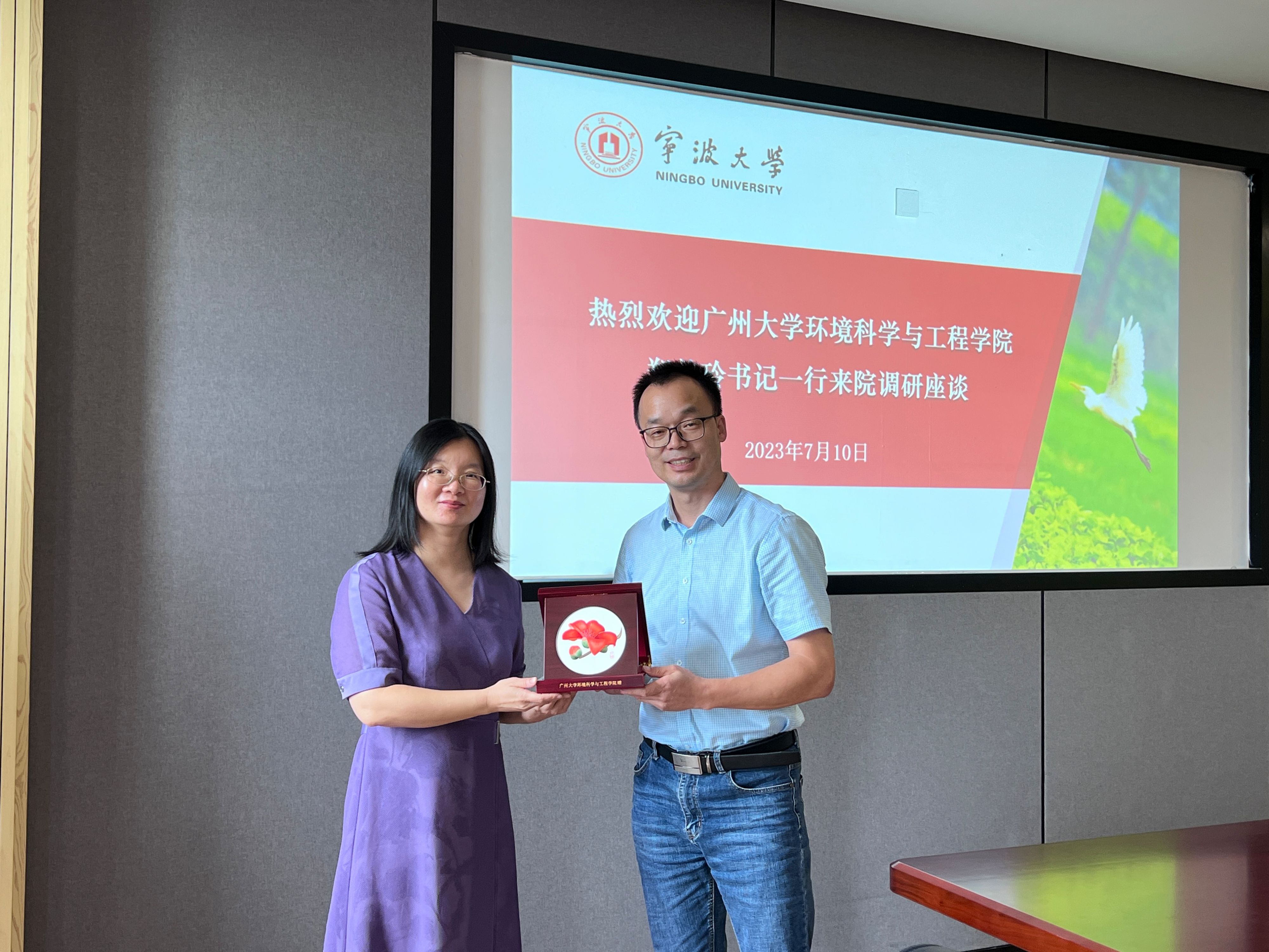 7月10日上午,广州大学环境科学与工程学院书记郑美玲一行来污漫 调研交流,双方围绕学院党建、学科建设、人才培养、研究生教育、行政管理和实验室管理等多方面进行深入座谈交流。院党委书记李加林主持交流会,院领导班子成员章子华、朱剑琼、于旭彪及市政与环境工程系主任、院办、学工/研工办、学科/科研/研究生办相关负责人参加会议。