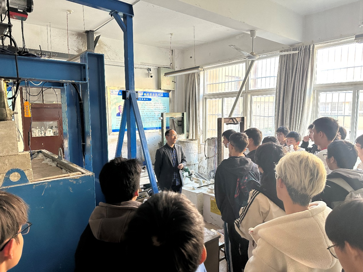 实验室参观环节,系副主任汪炳老师带领新生们参观了结构、岩土和建材等实验室。在结构实验室,王天宏老师向同学们介绍了各种结构实验的仪器和设备,并展示了实验过程。初汉增老师在建材实验室向同学们介绍了不同建材的性能测试方法和实验设备。邓岳保老师向同学们介绍了岩土实验室的基本情况,并讲述了岩土工程老师所开展的科研项目。通过实地参观和讲解,新生们对土木工程有了更加深入的认识,增强了他们对专业的兴趣和热情。
