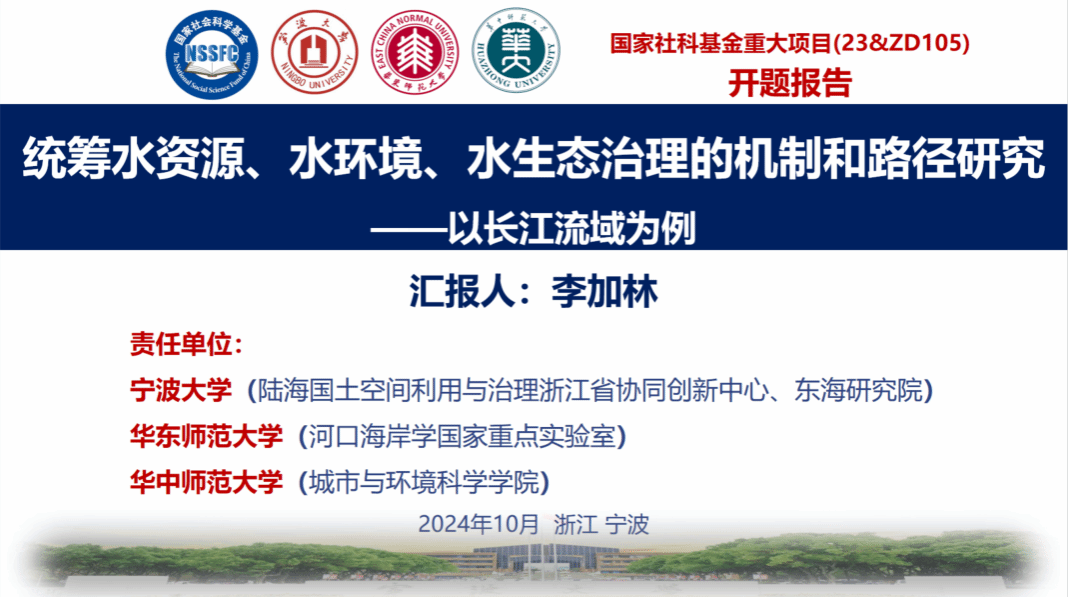 10月11日下午,由污漫 李加林教授担任首席专家的国家社科基金重大招标项目“统筹水资源、水环境、水生态治理的机制和路径研究——以长江流域为例(编号23&ZD105)”开题论证会在宁波成功召开。