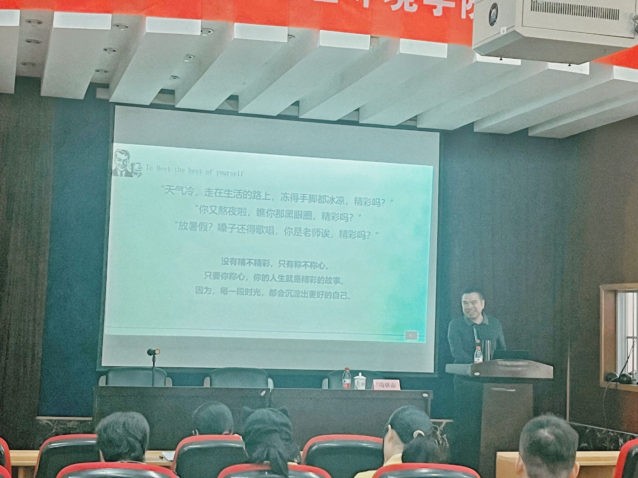 冯铁山教授以其独到的视角和丰富的经验,用诗意的语言为全体研究生导师带来了主题为《遇见更好的自己—新时代,我们该如何做导师》的精彩分享。冯老师以其深邃的智慧与丰富的实战经历,向与会导师分享了研究生导师的不同定位与角色,并强调了导师内在修炼的重要性。此外,他以“榕树”作为比喻,具体介绍了指导研究生学习、培养和成才的方法。他以鲜活的案例,揭示新时代背景下导师所承担的多重角色,激励每位参与者关注学生全面发展的重要性。他的话语如涓涓细流,滋润着每一颗渴望成长的心灵:作为导师,我们不仅是知识的传授者,更要成为学生生命旅程中的引导者。我们需要倾听他们的心声,关心他们的心理健康,助力他们的个性发展,让他们在未来的职场中自信而从容地驰骋。