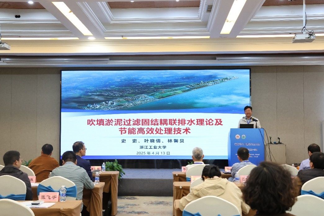 浙江工业大学史吏教授作了题为《吹填淤泥过滤固结耦联排水理论及节能高效处理技术》的报告。针对吹填淤泥真空预压中压力衰减、高能耗等问题,通过系统研究揭示了土颗粒迁移与淤堵动态机制,并提出过滤固结耦联排水理论。团队研发的循环真空预压技术通过间歇调控降低能耗,气举真空预压技术则实现真空压力无损传递,提升深层处理效率。研究成果形成了一套节能高效的地基处理体系,为软土地基绿色加固提供了重要技术支撑。