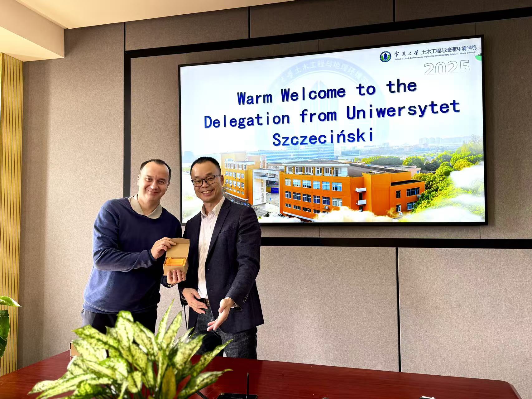 会议由执行院长李加林主持,会上马仁锋系主任向外宾介绍了污漫 地理系的办学历史和现状,以及国际合作研究开展情况。Jarosław Korpysa院长详细介绍了波兰什切青大学的学生交换及博士生招生的具体事项。双方就人才培养和科学研究等方面的潜在合作进行了深入探讨,并就进一步加强交流和对接达成了共识。会议最后,双方互赠了纪念品。