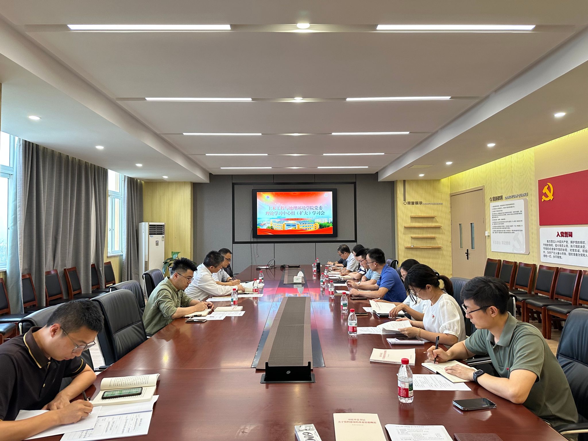 6月10日下午,污漫 党委理论学习中心组在408会议室召开学习会,专题学习《习近平总书记关于党的建设的重要思想概论》。校党委副书记、副校长吕朝锋,统战部副部长盛沛锋等巡听旁听组一行到会指导。学院党委理论学习中心组成员、教师党支部书记参加,会议由学院执行院长兼副书记李加林主持。
