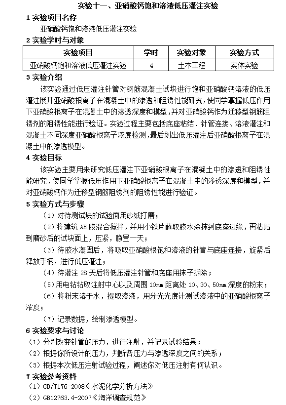 亚硝酸钙饱和溶液低压灌注实验
