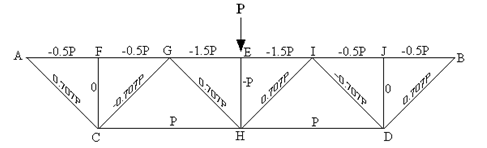 (1)桁架各杆件内力见图。