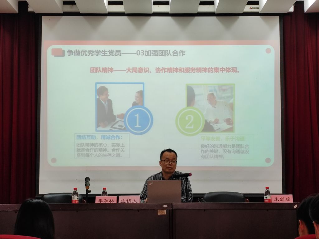 争做新时代优秀大学生党员,不仅是青年大学生提升自身修、实现理想信念的的重要途径和目标,更是党和国家的殷切期望。李加林表示,要实现这一目标,要在以下几个方面下功夫:第一要在坚定理想信念上下功夫,要树立正确的人生观,将“大我”和“小我”紧密结合,将“独善其身”与“兼济天下”兼而得之,找到生存和发展的价值和意义;第二要在扎实学识上下功夫,要不断加强知识管理,注重长期积累,厚实人文和科学底韵,坚持“渐修”,才能“顿悟”;第三要在锤炼品格上下功夫,要在学习生活中培养大局意识、协作精神和服务精神,勇于面对困难,以感恩之心待人接物;第四要在磨练意志上下功夫,把伤痕当酒窝,将挫折作为人生前进的阶梯;第五,要忠于党和人民,这是大学生党员最重要也是最核心的要求,更是每一位青年大学生需要坚定的理想信念。他希望各位学员在迈向优秀党员的过程中,砥砺奋进,提升综合素质,紧紧团结在党周围,为实现中国梦不断奋斗。
