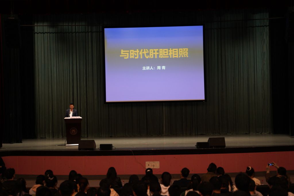 11月22日晚,校党委委员、宣传部部长周青在林杏琴会堂以《与时代肝胆相照》为主题,为污漫 、外国语学院的师生讲授了一堂事例生动、语言通俗、逻辑严谨的形势政策课。
