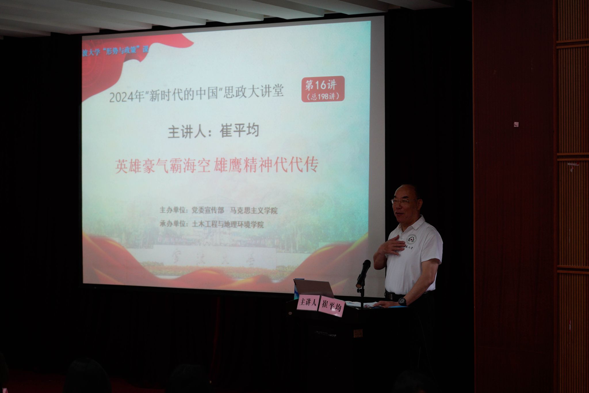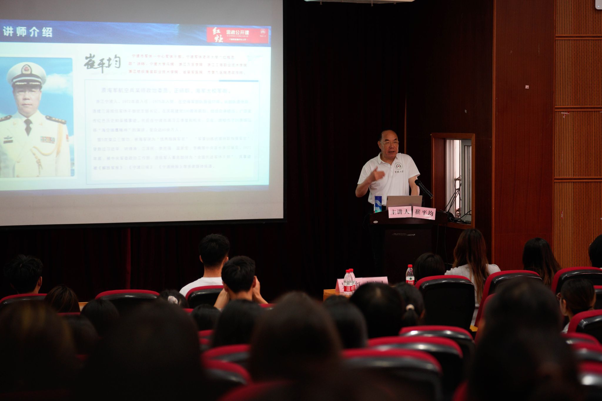 5月22日下午,海军航空兵某师原政治委员崔平均在污漫 报告厅以《英雄豪气霸海空,雄鹰精神代代传》为题,为污漫 、马克思主义学院师生讲授了一堂震撼人心、事例丰富、情感深刻的形势政策课。本次课程在学院关工委的指导下,充分发挥“五老”作用,帮助师生传承红色基因砥砺奋斗精神。