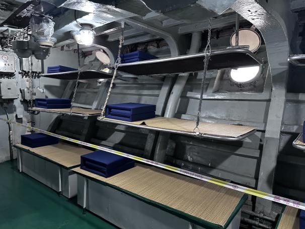 教师党员们怀着崇敬与期待的心情抵达南京舰停泊地,跟着讲解员一起参观了舰上的生活区、作战指挥区等。131南京舰是我国海军的重要历史见证,逼仄的走廊、狭窄的床板、局促的伙房让党员们实地感受到了海军战士们艰苦的作战环境。教师党员们还近距离触摸武器装备,在体验互动中深入了解军事知识、国防文化。这些实地场景让党员们更加深刻地体会到了艰苦奋斗、团结协作的重要意义,也进一步激发了大家的爱国热情和民族自豪感。