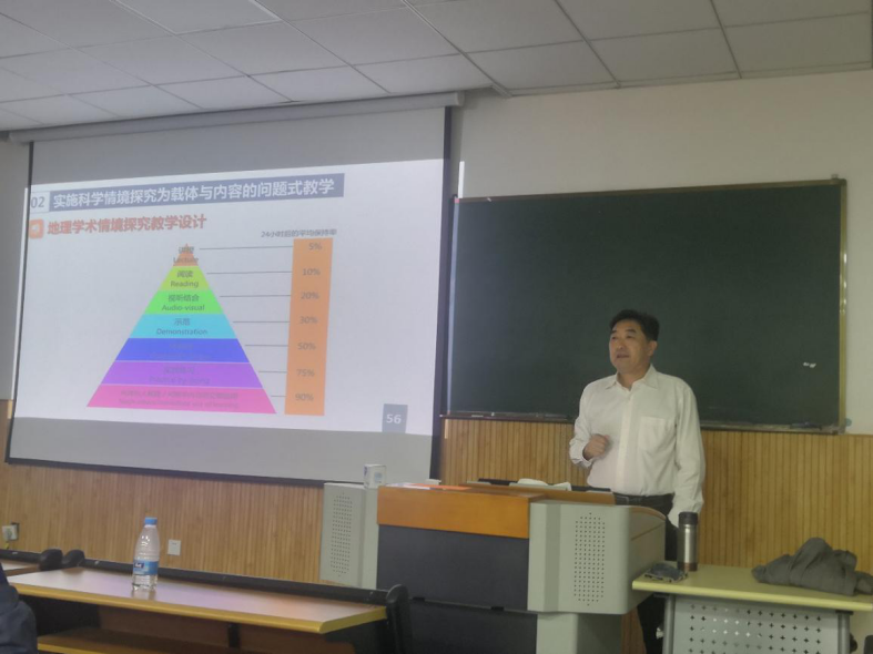 客座教授、浙江省特级教师、宁波中学常海东老师开展了“基于落实学科核心素养的地理教学转型探讨”的专题学术讲座。参加会议者有:地理科学(师范)专业本科生、地理学科教育研究生、宁海县青年地理学术骨干教师。