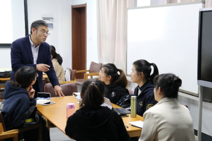 俞炯志老师广泛选用贴近同学们学习和生活环境的示例,深入浅出,将抽象的理论形象化、生动化,便于同学们理解领会。俞老师不仅逻辑思路清晰,语言表达流畅,由浅入深,而且巧妙地设置问题,促进同学们对校本课程知识的深化理解。对于重点问题,俞老师组织小组讨论,引导学生自主探究和思考,对同学所分享观点和解决方法及时反馈,并站在同学们将成为新老师的角度上,示范如何在课堂上组织讨论和分享解决突发事件的经验。最后,俞老师向地理师范专业学生提出了真挚的建议,鼓励同学们在走上教育岗位后,要不断学习、深入研究、坚持写作,并向名师潘小明学习,善于反思学习和实践中的不足。
