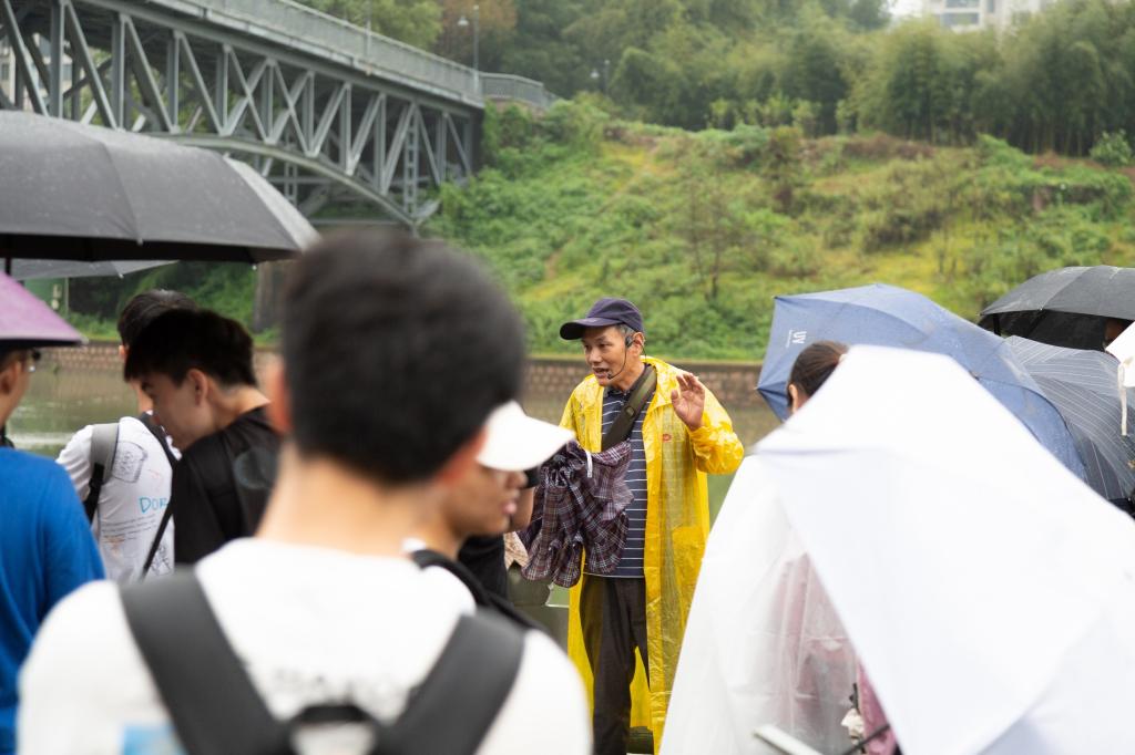 10月13日中午,同学们抵达宁波市奉化区溪口镇,吃完午饭后下起了大雨,李老师与童老师为同学们讲解了四明山南区概况与野外实习的注意事项,特别提醒同学们雨天要注意防水防滑。