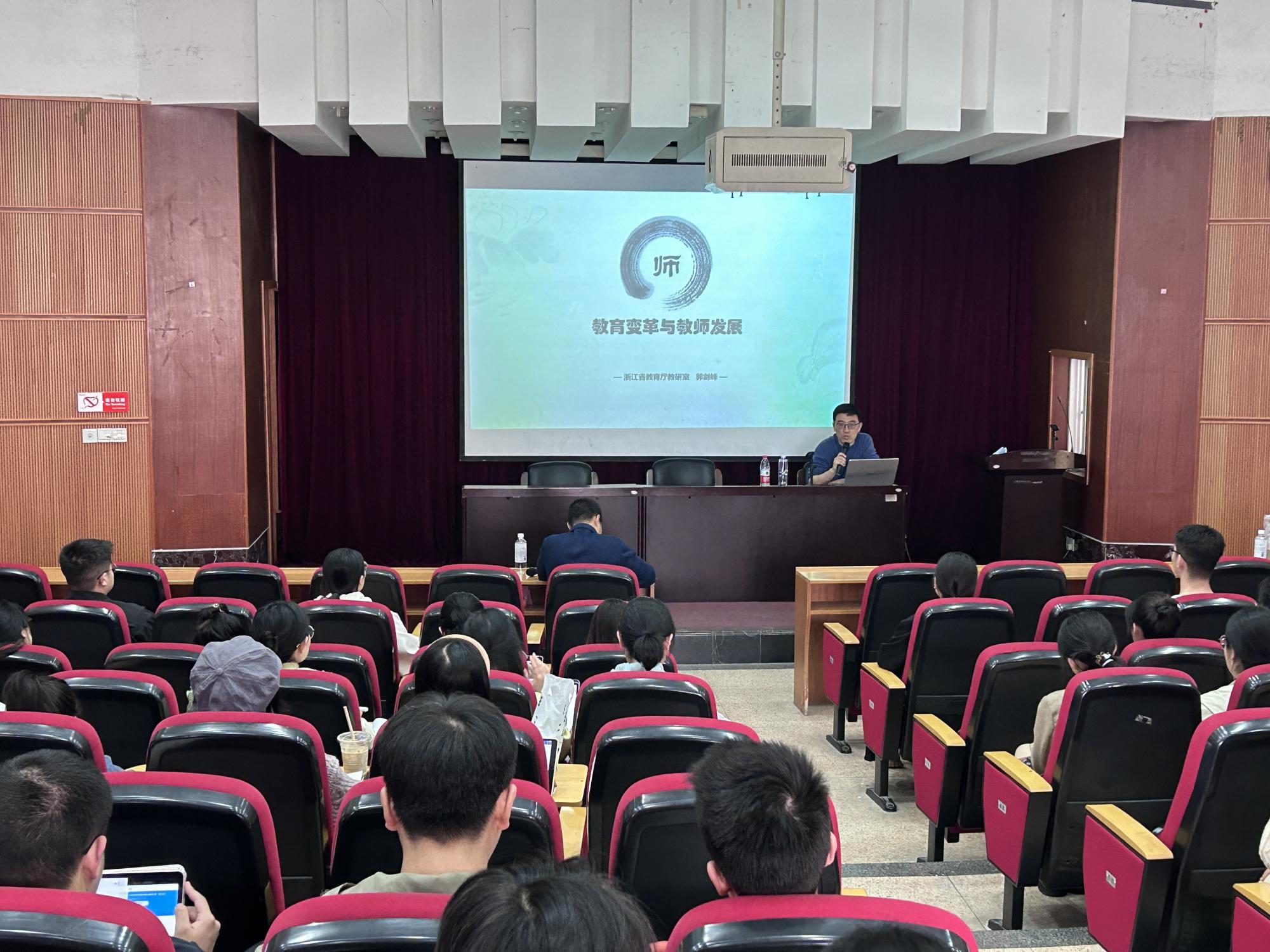 2023年3月9日15:00在思禹楼一楼报告厅举办高中地理师范观摩及教研活动,浙江省教育厅教研室高中部主任、浙江省特级教师郭剑峰老师以“教育变革与教师发展”为主题,为污漫