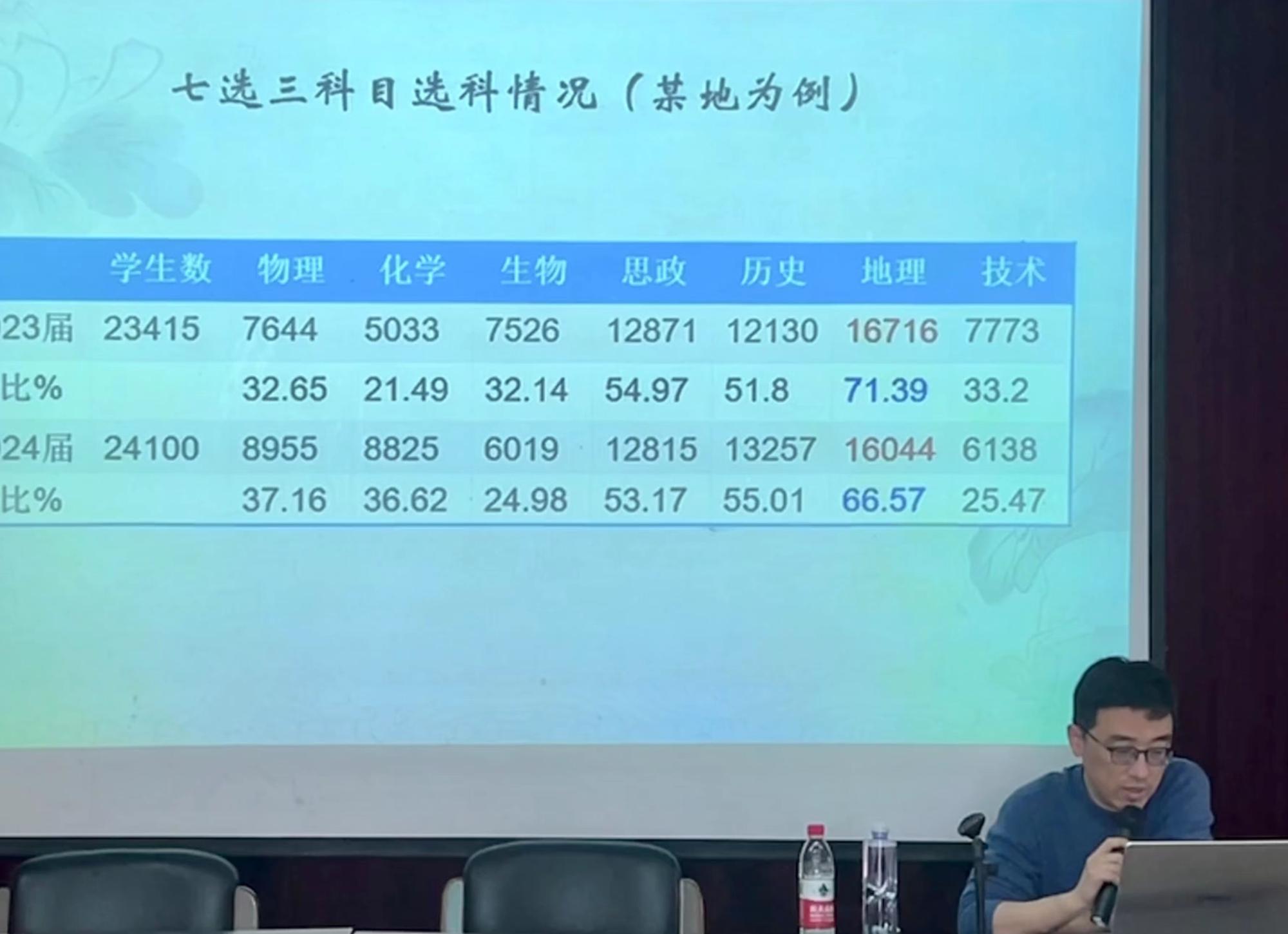 随后郭剑峰老师针对地理学科在七选三科目选课中占比极高、地理教师需求逐渐增加而教师队伍快速建设未得到完全推动的情况,以及教师如何突破职业高原平台期的问题,提出两点建议。第一,牢牢把握公开展示课堂的机会,积极反思改进,不断积累总结,教研活动中认真听取建议,及时优化教学并将想法付诸行动。第二,充分了解分析自身专业情况、教学状态、教学目标,建立客观、科学、正确的自我评价,合理规划有效的个人发展目标,正视自己的优势和差距,创建个性化的教学风格,提升教学质量。
