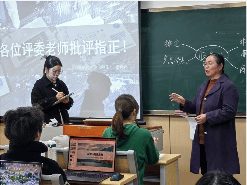 2024年3月16日下午,2021级地理科学(师范)专业全体同学在6号楼207教室开展高中地理微格教学活动。效实中学地理教研组长吴巧红老师应邀参加本次地理微格教学活动,与地理系徐皓老师一起为同学们提供宝贵建议,帮助同学们培养良好的教学素养。
