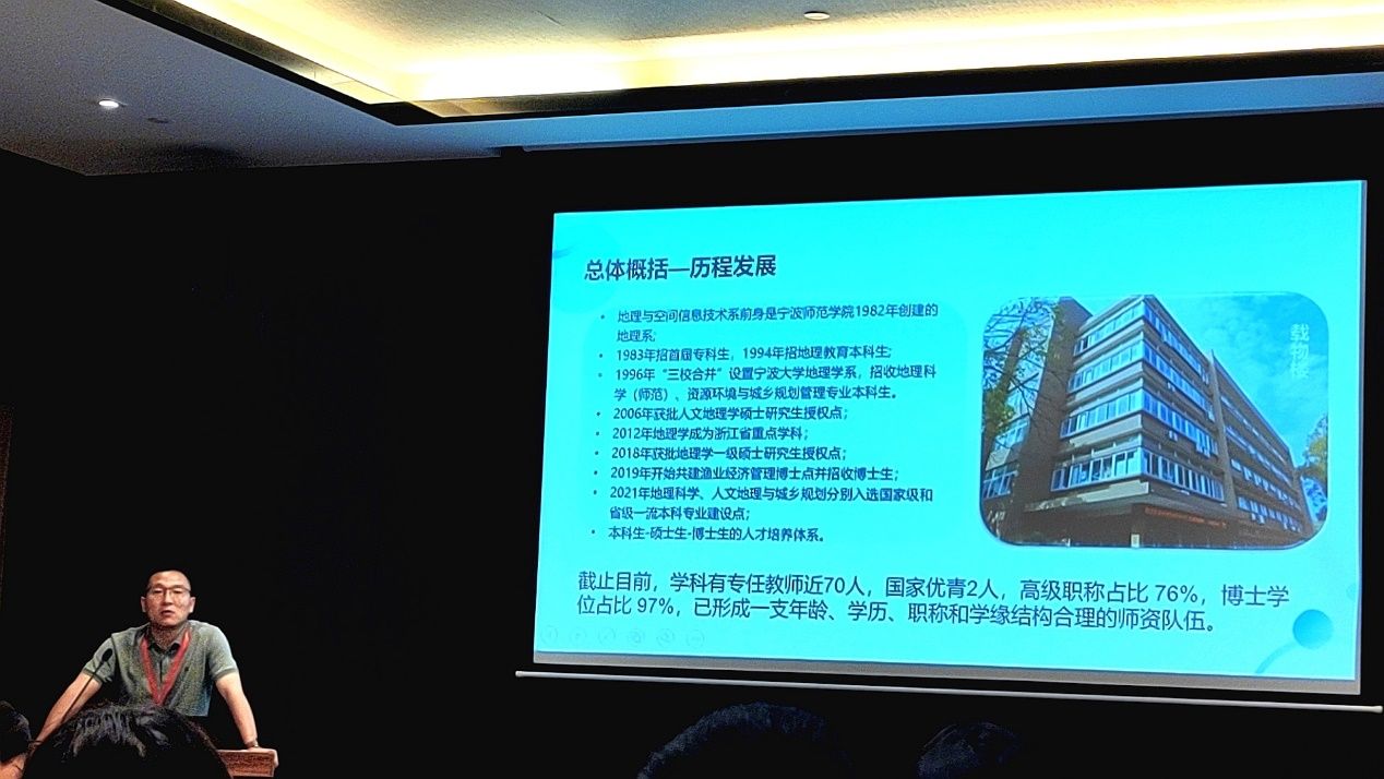 教育部高等学校地理科学类专业教学指导委员会委员王楠教授、地理与空间信息技术系副主任杨晓东教授参加了会议,杨晓东教授在分论坛二“地理学教材与课程建设”中做了“生物地理学在滨海地区建设实践”的报告。该报告回顾了地理系的发展脉络,介绍了当前的现状。同时,着重强调生物地理学在滨海地区的课程建设,应该在传统知识基础加上岛屿生物地理学、低山丘陵垂直地带性、海陆水平地带性的内容;同时要注意知识更新,加入人类活动和气候变化对生物地理过程的影响。课程思政设计应该润物无声,在生物地理格局中,利用本地“四明山横坎头和章水镇的红色资源,定海的鸦片战争古炮台遗迹”,在实习实践同时,开展思政教育。