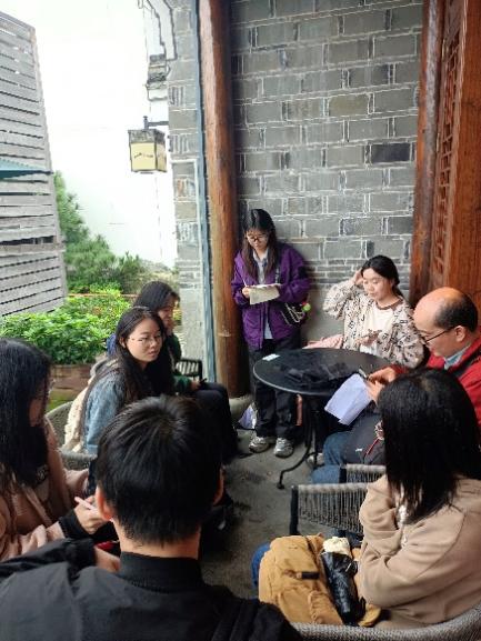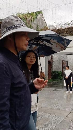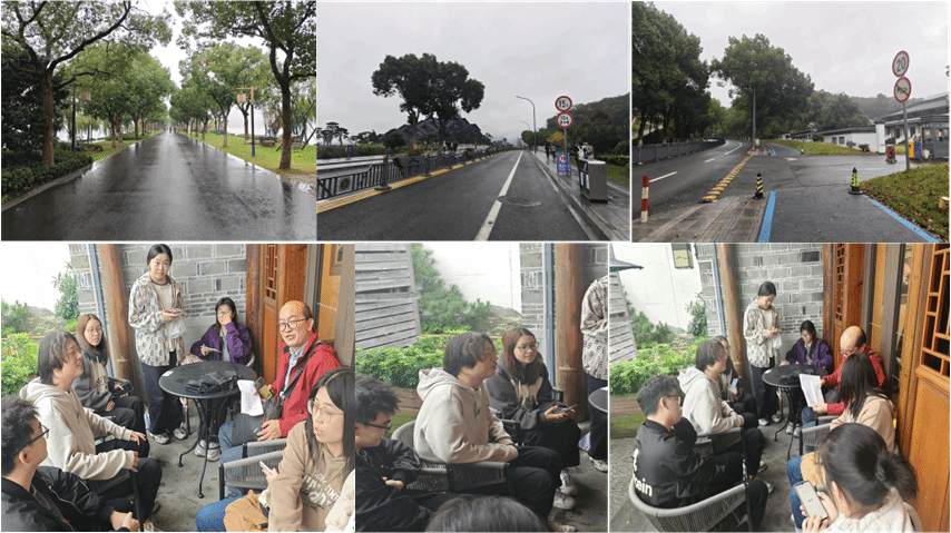 11月10日早上我们到达东钱湖沿岸步道,附近是岳鄂王庙景区。根据马老师的讲解,结合先前调查的资料,我们对东钱湖生态保护、文化旅游融合发展以及基础设施建设等方面有了更深入的了解。随后我们来到了院士中心,里面展有其的历史、布局、规划、发展理念等内容。院士中心后面有一个古朴的村子——建设村。在这里我们组开始了本次实践的访谈部分。我们在村内访谈了两位中年妇女。她们在当地居住或上班,通过她们的视角我们了解了更多有关东钱湖的信息。中午我们来到了韩岭老街,即使是下雨天,路上仍有不少游客。在这里我们采访了青年、中年、老年三个年龄阶段的游客,在访谈过程中我们组收集了他们在韩岭老街以及东钱湖游玩的体验、动机。下午我们访谈了东钱湖地铁站周边的两家租车店,通过他们去了解东钱湖环湖道路的骑行与专业赛事人群的特点。在东钱湖的调研过程中,刘雯雯同学主要负责场景与访谈的录像,邹凯熙同学负责访谈,屈露雯、徐婷婷同学负责录音与补充询问。