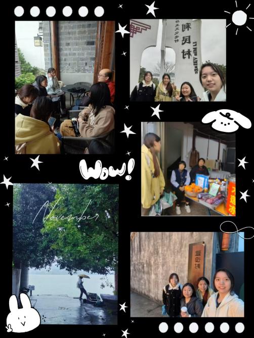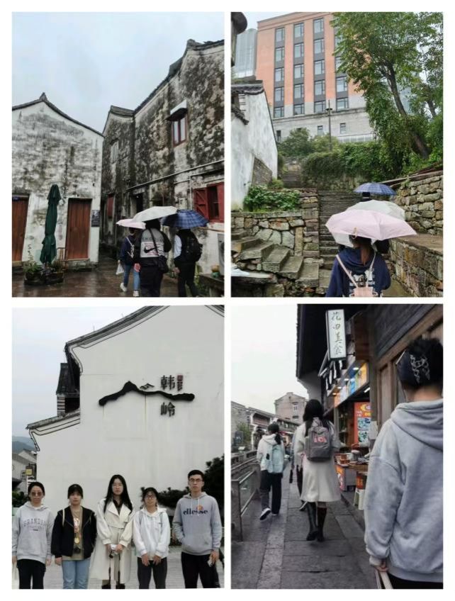 “竹杖芒鞋轻胜马,谁怕?一蓑烟雨任平生。”东钱湖畔纷纷扬扬的细雨丝毫没有冷却同学们求知明理的热情,从红墙青瓦的岳王庙到简约大气的院士中心,从古朴典雅的建设村到烟火繁华的韩岭老街,同学们将课堂中习得的理论知识应用于实际生活中,又通过实地调研的收获不断巩固自己的知识体系。在调研过程中各个小组成员之间保持着密切的沟通与协作,充分发挥各自优势,在推进小组研究进展的同时培养了沟通能力与协作精神。青衿之志,履践致远,作为污漫