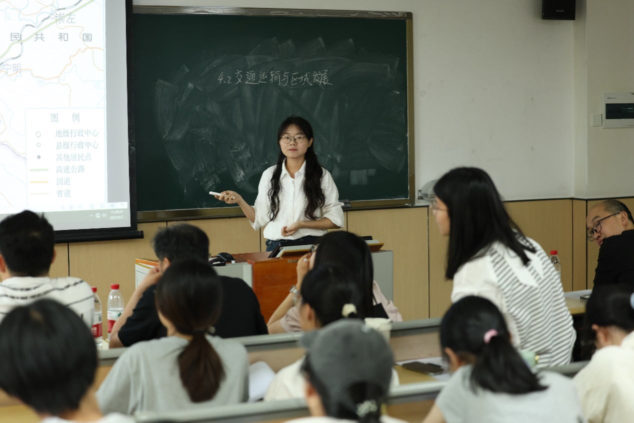 杨磊老师首先从板图绘制与板书逻辑角度评析了11位参赛选手的讲课表现;此外,就提问的有效性角度,强调了师生互动时对答案的预设准备与对学生回答的巧妙应对的重要性;吴巧红老师分析了情境设置与导入安排在课程设计中的亮点;来自初中的龚瑾老师以初中学情分享了“如何将地理讲得有趣”的方式,以及为抽象术语给予具象表达的意义,为参赛同学新的授课视角。