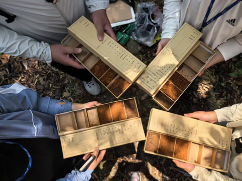 经过一天的实地耕耘,天童山土壤与生态实习落下帷幕。从土壤剖面的分层采样到垂直样方的梯度调查,从标本制作的精细记录到山径跋涉的协作攻坚,我们将天童山装进背包,在海拔落差间触摸生态系统的呼吸节律。每组归程的行囊里满载的不仅是30份植物标本,更有一颗颗被自然智慧点亮的赤子之心。这段扎根大地的实习经历,终将成为我们走向更广阔生态研究领域的基石。