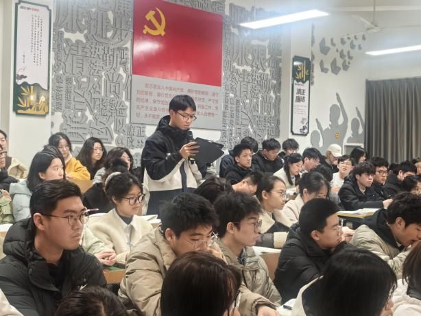 课堂正式开始,由作为校长的杜老师亲自上课,从工业革命引入,自然过渡到鞍钢与宝钢的对比思考。进一步从书本上的例题出发,以学生为本,分析题目答案,培养学生独立思考的能力,并带领学生完善课程板书,启发学生思维。最后更是以deepseek、宇树科技等时兴热点话题作为结尾,促进学生课后的持续学习。杜老师在授课过程中注重课堂氛围穿插,囊括了个人思考、同桌合作、小组合作等环节;把握课堂节奏,及时提示学生思考方向;呈现了情境交融的教学范例,力求让同学们在探究真实问题中落实学科素养。课堂最后更是联动同学们与学生一起回答问题,巧妙结合大学与高中的学习内容。