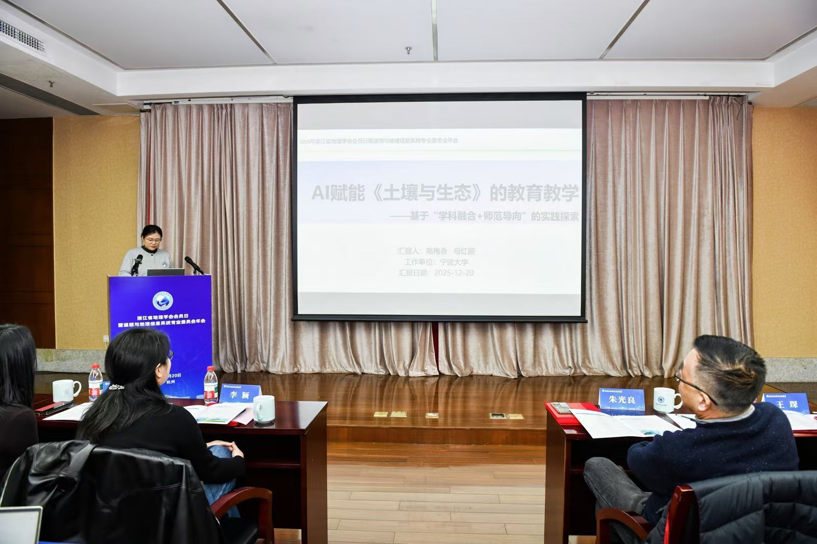 、浙江外国语学院、浙大城市学院和山东师范大学等单位近百名专家学者参加。本次会议聚焦“AI与信息地理教育教学”,探讨教育教学前沿发展,交流教学实践经验。