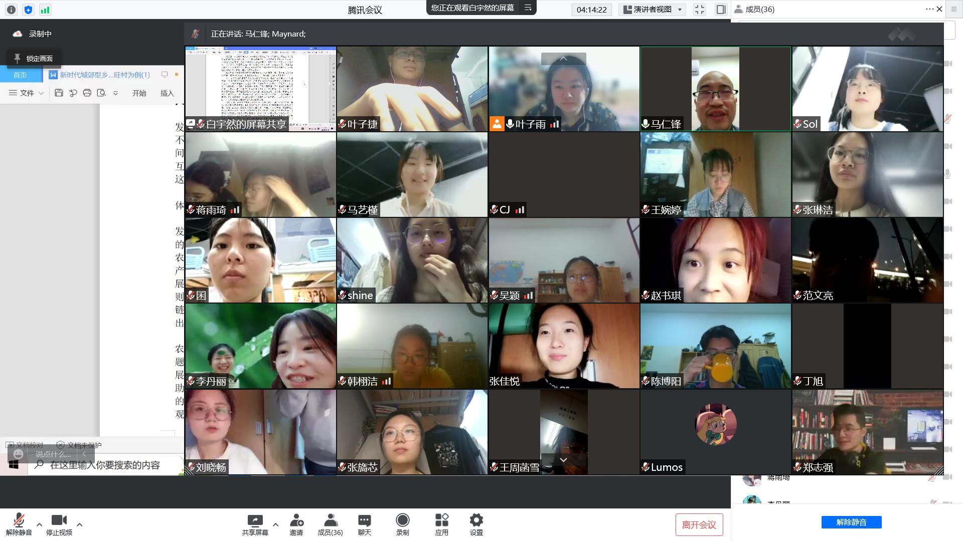 2022年5月19日18:30至22:30,在任课教师马仁锋主持下,2019级地理科学(师范)专业的同学们进行《人文地理野外综合实习》课程小组大作业的线上汇报,为持续三个月的人文地理野外综合实习课程进行总结与评比。