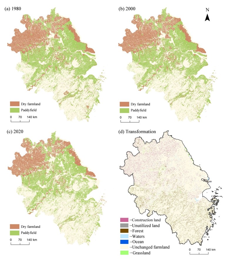 韩沂芮为第一作者,袁佳轩为参与作者发表的论文题目为“Estimation of Grain Crop Yields after Returning the Illegal Nurseries and Orchards to Cultivated Land in the Yangtze River Delta Region”(Land;论文链接//www.mdpi.com/2073-445X/11/11/1993)。该论文针对新冠疫情、贸易限制和俄乌冲突引起的全球粮食价格上涨,我国粮食安全突出的问题,从遏制耕地“非农化”、防止耕地“非粮化”的国家重大关注为对象,研发了估算长三角地区耕地转化为果园和苗圃面积的方法,得出长三角地区近40年耕地面积下降了11.8%;针对“退林还田”政策实施面临的难题,提出可以通过农业合作社、政策鼓励年轻人回村务农、允许社会资本开展“退林还田”等措施解决农村劳动力老年化的问题;利用模型预测得出,如果实施“退林还田”政策,长三角地区新增粮食将养活2800~2900万人。