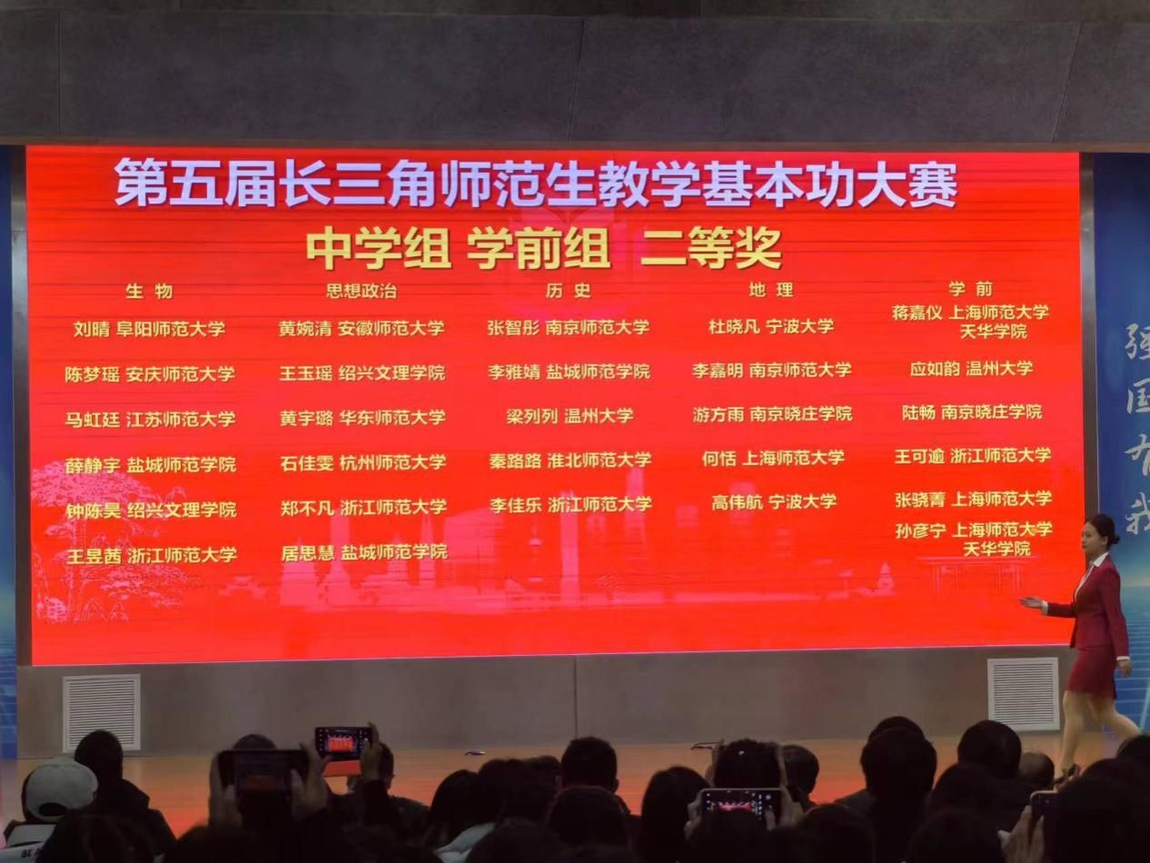 第五届长三角师范生教学基本功大赛于2023年12月17-19日在安徽师范大学举行。本次比赛有来自长三角三省一市各师范院校的305名选手参加。经过激烈角逐,2020级地理科学(师范)专业本科生杜晓凡、高伟航荣获二等奖。