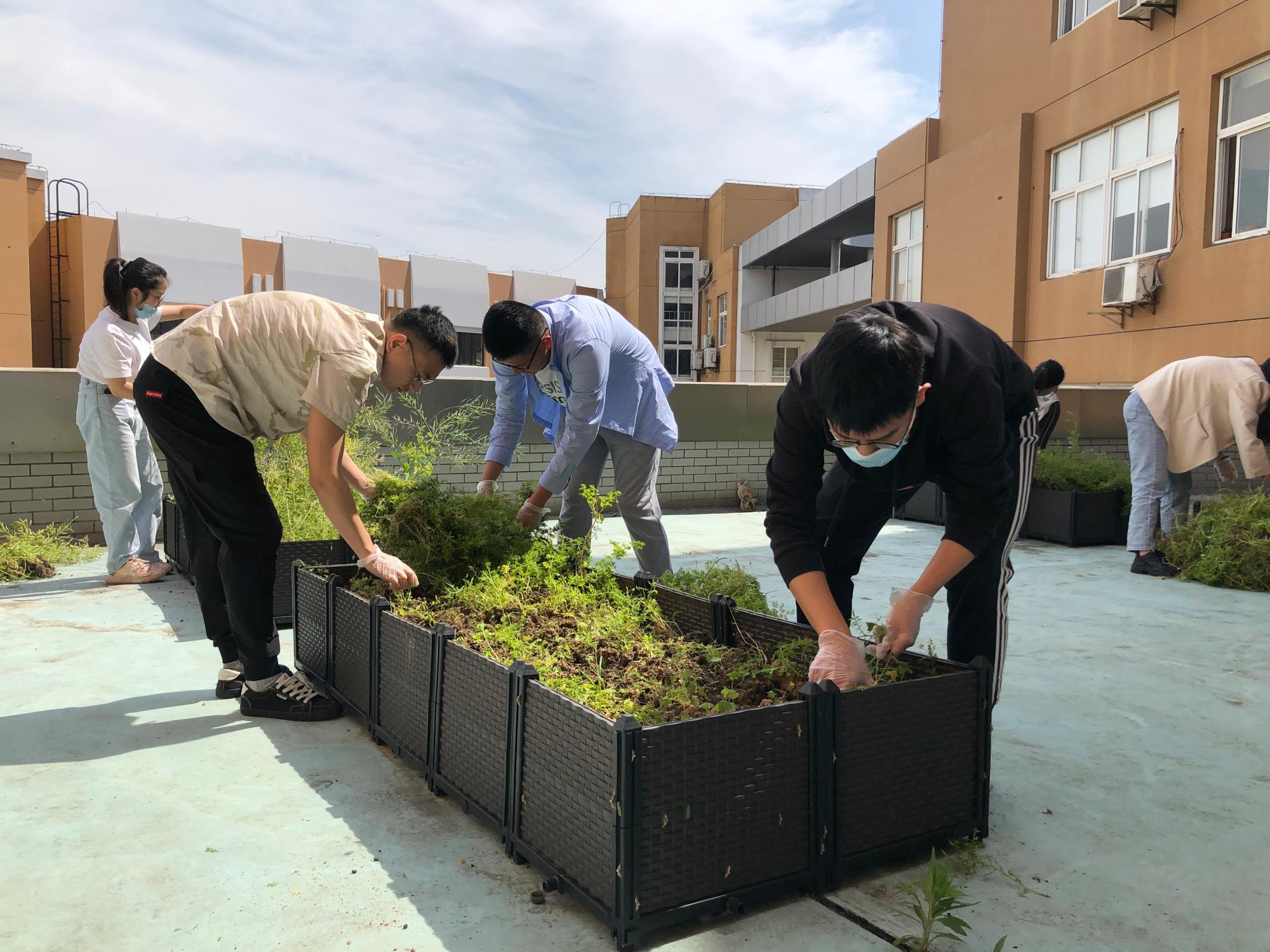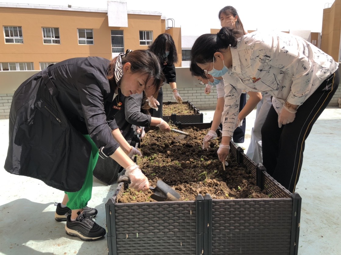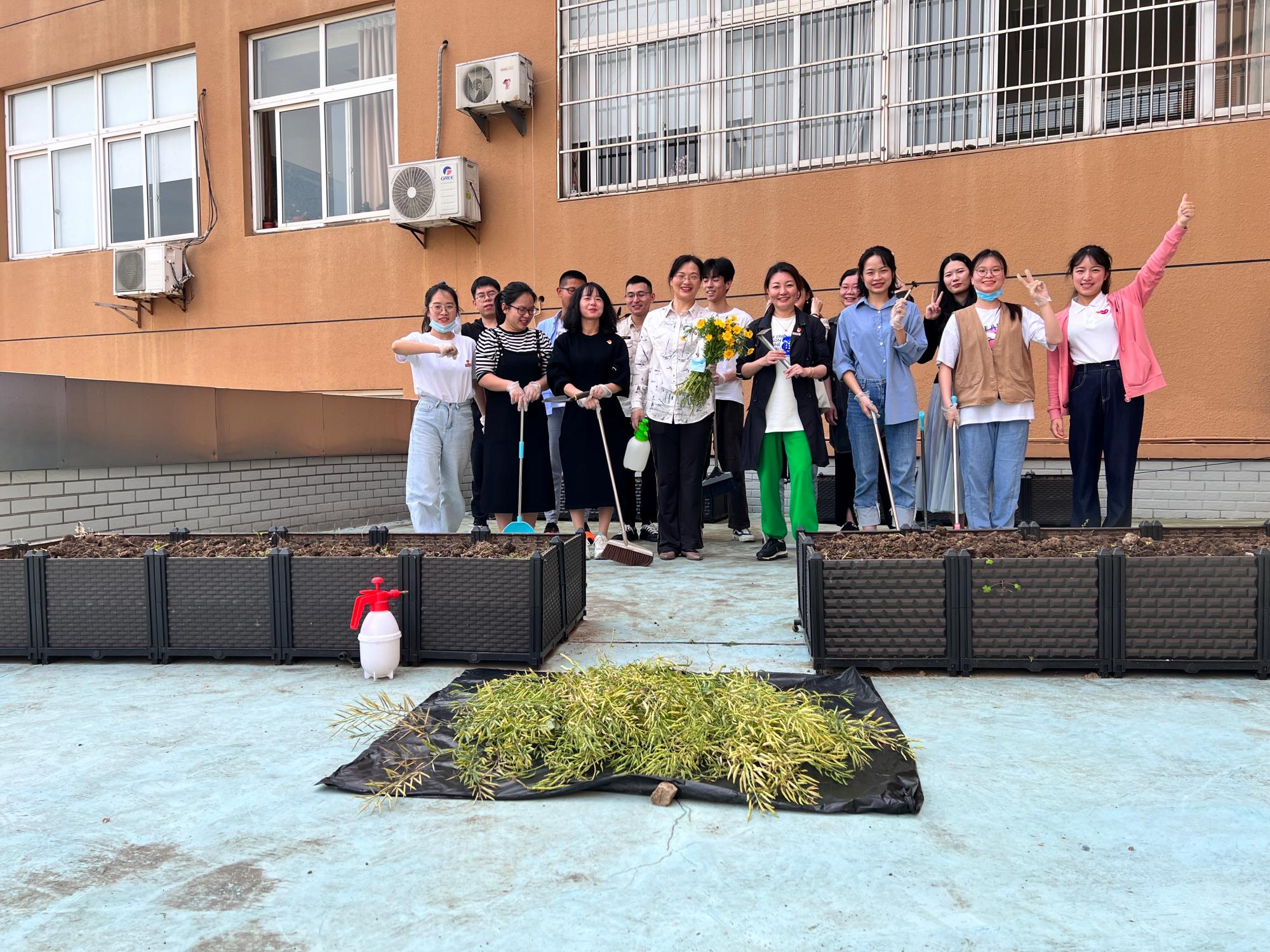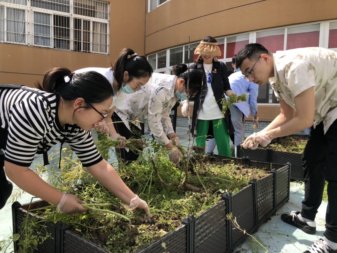 学院党委书记孔晓虹、副书记朱剑琼也在骄阳下带领着同学们除草、挖土,师生们在一片欢声笑语中种下希望的种子,大家满怀期盼,期待“五四”的种子能够开出艳丽的花朵。孔书记代表学院祝师生们节日快乐,并祝福各位永远保持年轻态,愿付出甘之如饴,所得归于欢喜;愿留下的青春,回忆起来都很美!